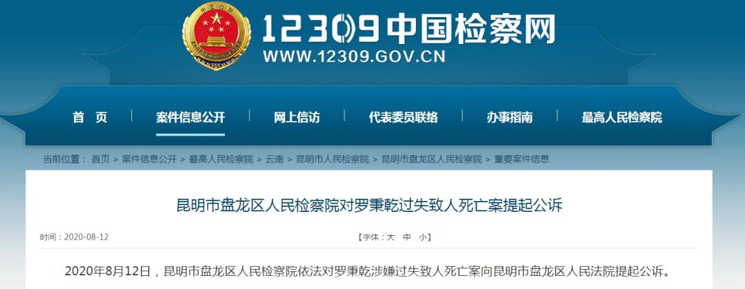 原标题:《昆明市盘龙区人民检察院对罗秉乾过失致人死亡案提起公诉》