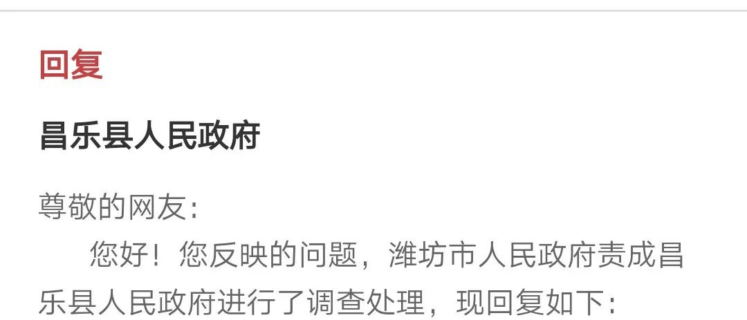近日,昌乐县人民政府对此事件进行了统一回复: