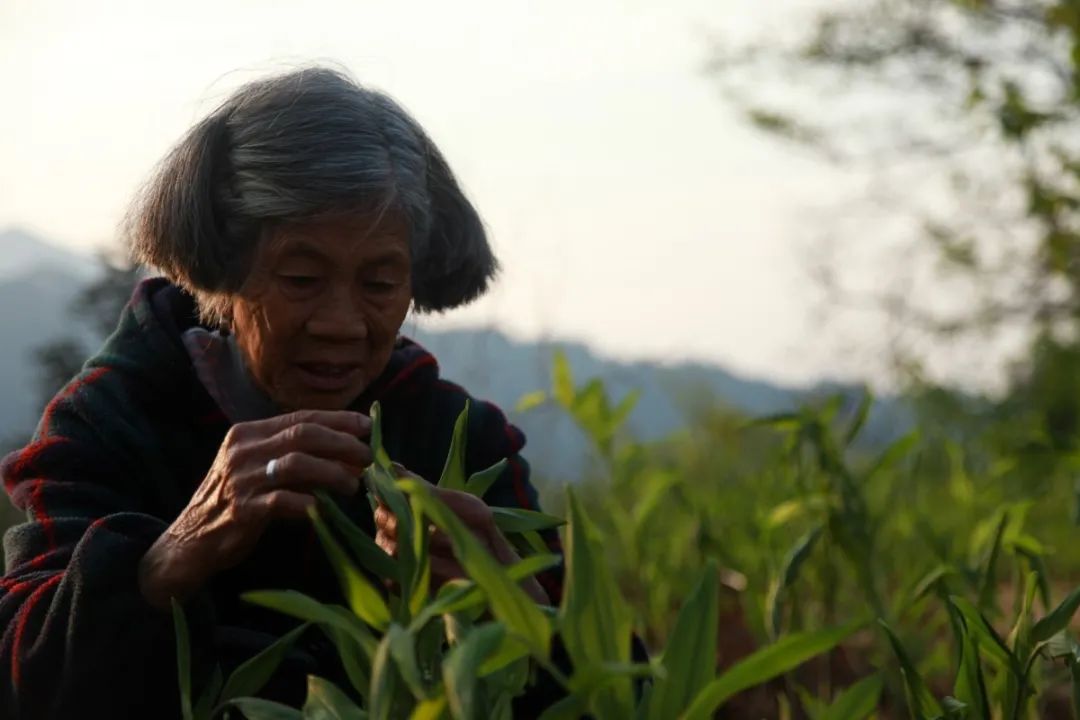 一株株玉竹破土而出、长势喜人。陆奶奶蹲在玉竹地里,小心翼翼地养护着玉竹。