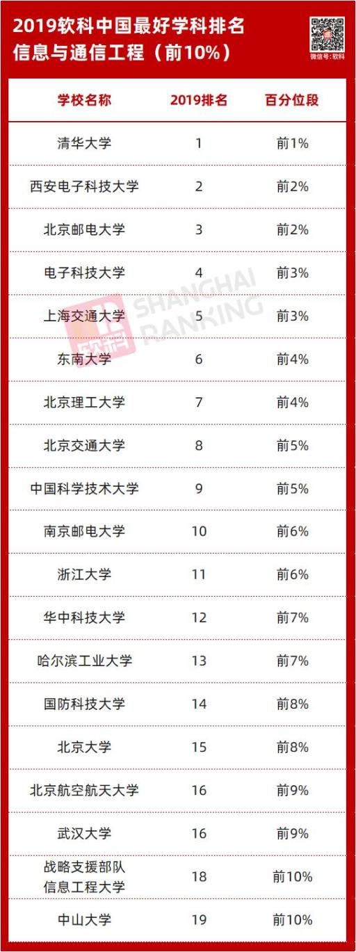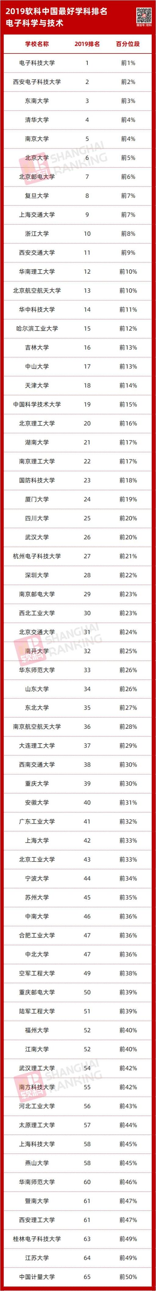 在2019软科中国最好学科排名中,电子科技大学、西安电子科技大学和东南大学的电子科学与技术学科排名位列国内前三。