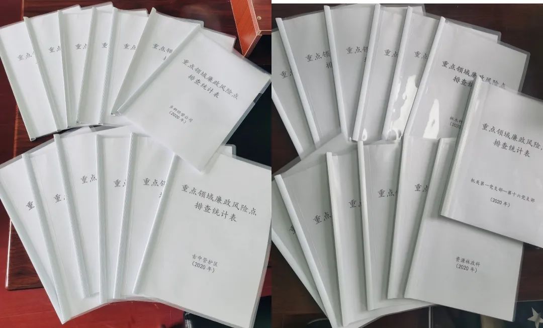 重点排查全覆盖。在全局下发《关于开展重点领域廉政风险点排查工作的通知》,全面排查各单位(部门)岗位职责、业务流程、制度机制、外部环境等方面可能发生腐败行为的风险点,深入查找个人岗位廉政风险,突出领导岗位、中层岗位、重要岗位存在或潜在的廉政风险点。互相把脉查漏缺。各单位(部门)通过自己找、科室提、领导点等方式,查找自身存在或潜在的风险内容及其表现形式,紧密结合工作实际,认真查找廉政风险点,深刻分析原因。认真填写《个人岗位廉政风险防控登记表》、《单位(部门)廉政风险防控登记表》,制定整改措施,大力营造“有权力就有廉政风险”、“岗位有风险、履职须谨慎”的浓厚廉政氛围,让每个党员干部自觉参与到廉政风险防控工作中来。层层把关定等级。从规范权力入手“风险定到岗,制度建到位,责任落到人”对不同等级的风险,建立了主要领导、分管领导和基层负责人一级抓一级的廉政风险监督管理责任。明确工作流程,完善风险预警机制。全局45个单位(部门)共排查岗位廉政风险点71个,排查个人重要岗位廉政风险点446个,建立岗位廉政风险防控清单517个。通过开展廉政风险排查工作,进一步实现廉政风险精准发现、精准处置、精准防控,强化了对单位(部门)的监督管理,提高了廉政风险预警防范意识,筑牢了干部、职工拒腐防变第一道防线,从源头上堵塞漏洞,将权利关进制度的笼子,织密廉政风险防腐网,确保权力在阳光下运行,为林业局转型发展提供强有力的政治纪律保证。
