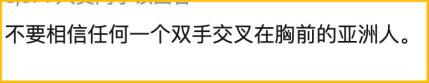 “不要轻易相信任何一个双手交叉在胸前的亚洲人。”
