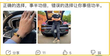 他们有的做出了正确的选择,开四个排气管的豪车,戴貔貅手串,双手交叉于胸前的姿势如影随行,甚至还能准确分清“事半功倍”和“事倍功半”的使用。