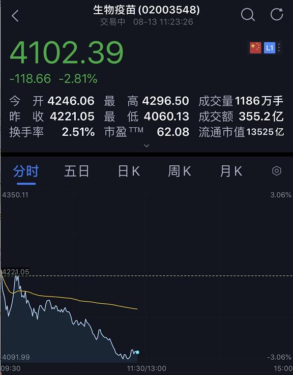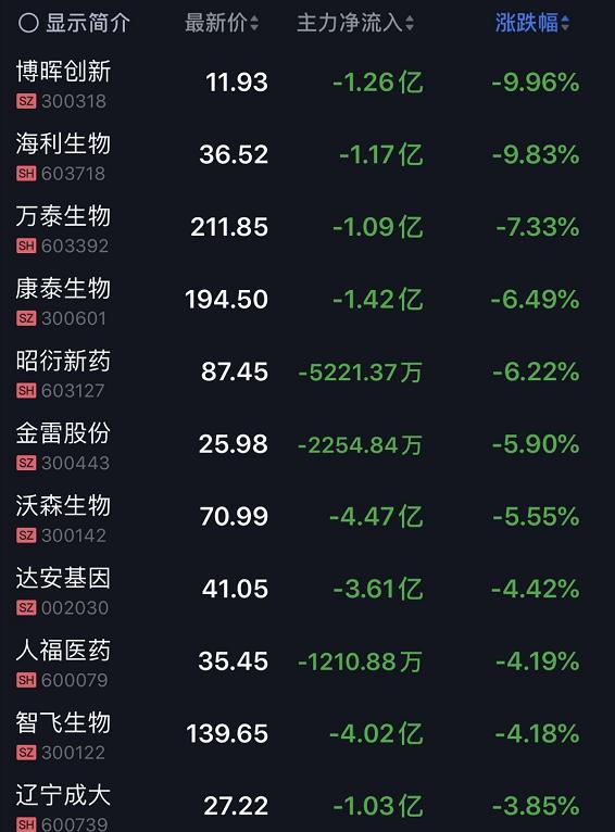 13日,领跌的疫苗高标股继续下挫。博晖创新封住跌停,海利生物、金雷股份、万泰生物等跌逾5%。