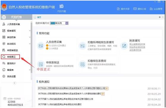 操作方法:在自然人电子税务局(扣缴端)申报软件中点击左侧功能区“申报更正”。