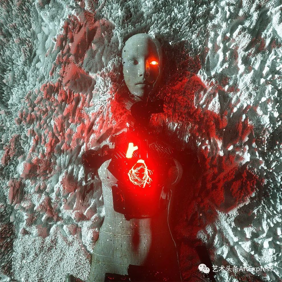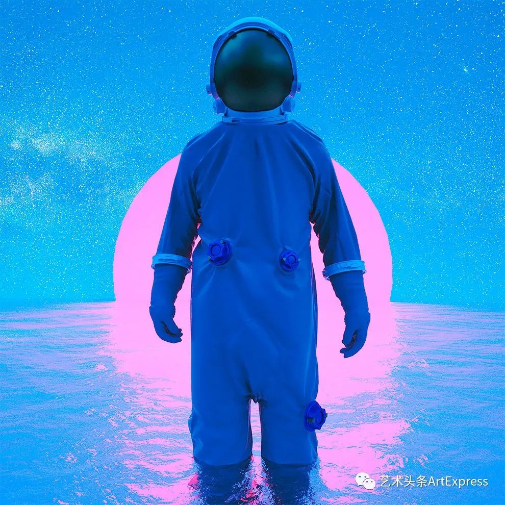 Dangiuz不是传统的架上绘画画家,而是用电脑制作3D图形的视觉艺术家,他的画作,会用到十几个专业软件,用得最多的是Cinema 4D(建模)、Octane Render(渲染),还有Photoshop(调色差、对比度、饱和度)。
