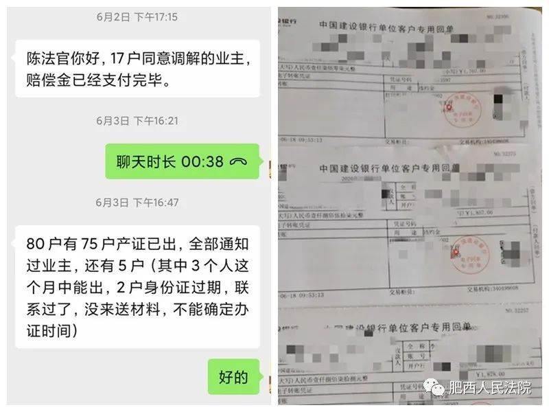 吴某某等80位原告起诉合肥某置业公司,要求公司办理房屋产权证书并支付逾期办证违约金,拿到该80份诉前调解卷宗材料,第二速裁团队承办法官发现该系列案件事实清楚,证据也较为充分,若案件转为诉讼程序开庭审理,不仅增加当事人诉累,也会耗费大量诉讼资源。书记员陈倩便主动和被告某置业公司沟通调解意向,但被告担心引起其他业主的连锁反应,故拒绝调解。