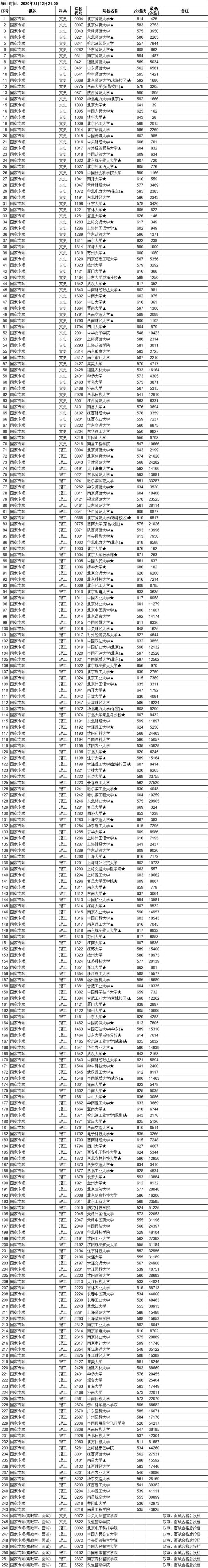 参加国家专项计划本科批次录取的文史类院校共有70所,全部投档满额,投档分靠前的院校是: