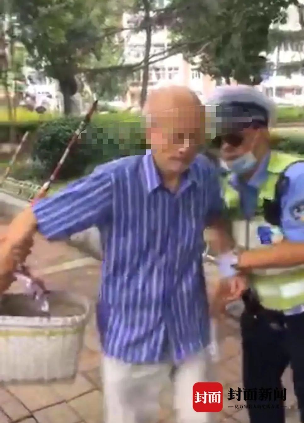 一名老人向路过行人挥刀,被抓时表情淡定