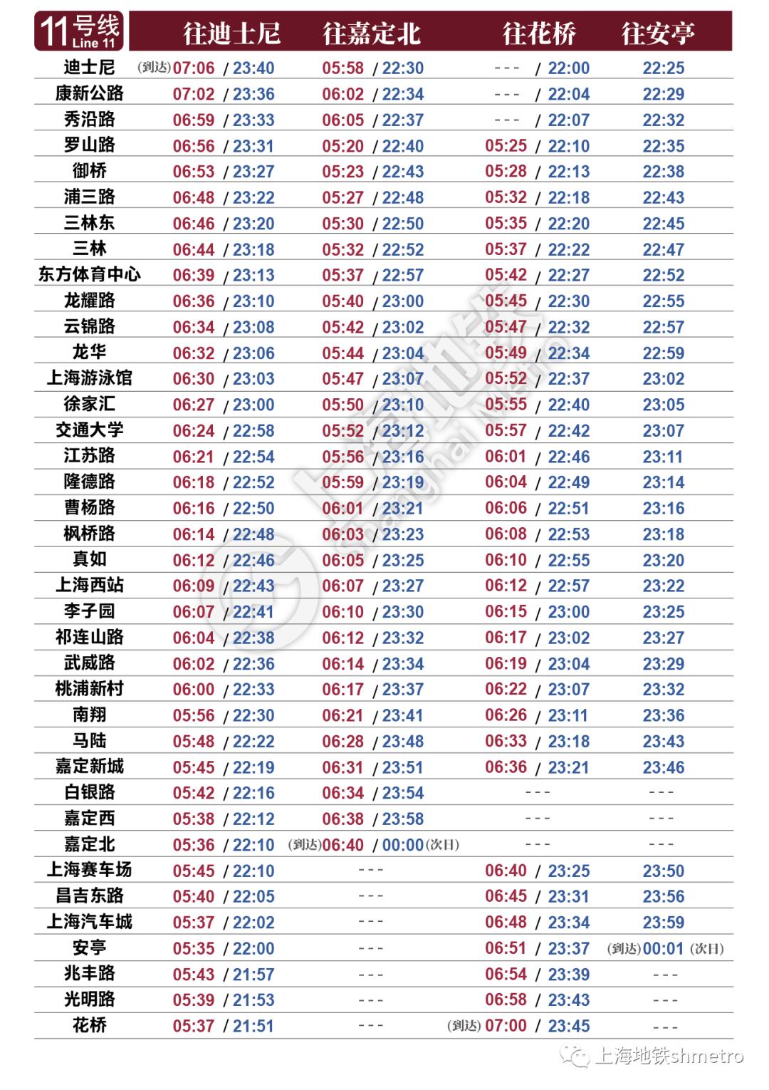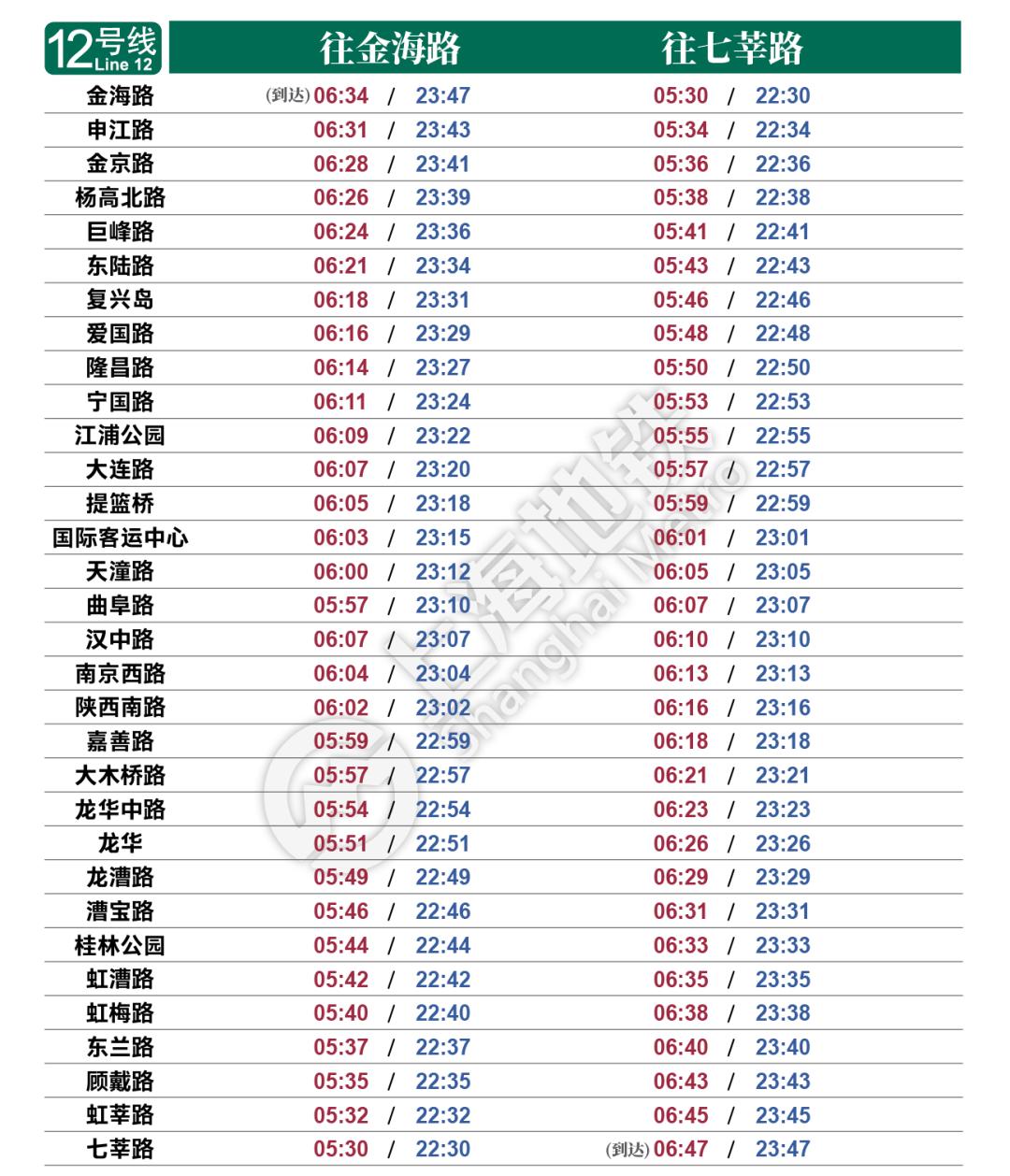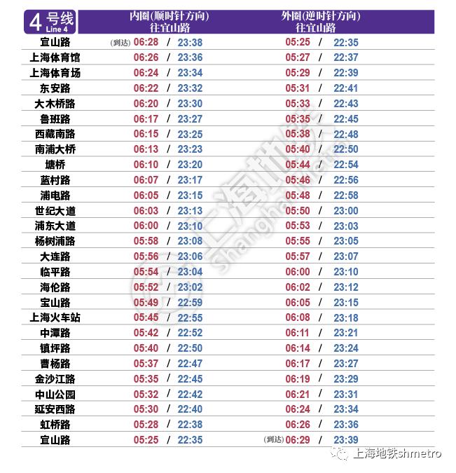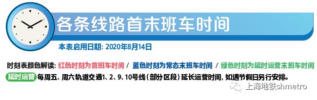 申通地铁集团说,因3/4号线今起启用新列车运行图,上海地铁各条线路首末班车时刻表也将调整。每周五、周六轨交1、2、9、10号线(部分区段)延长运营时间,如遇节假日另行安排。最新的全网首末班车时刻表详见↓资料:上海发布原标题:《3/4号线今起启用新列车运行图,上海地铁各线路首末班车时间调整》