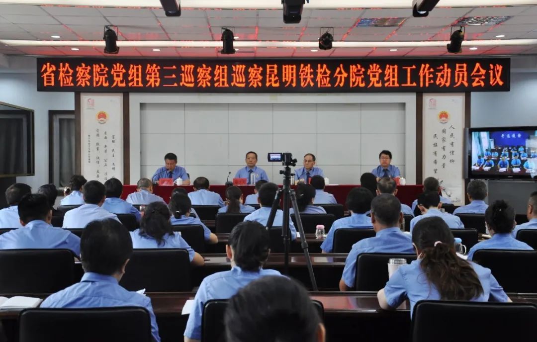 根据云南省人民检察院党组2020年巡察工作安排部署,省院党组第三巡察组(以下简称第三巡察组)对云南省人民检察院昆明铁路运输分院(以下简称铁检分院)开展为期30天的常规巡察。8月13日上午,第三巡察组进驻铁检分院并召开巡察动员会,分院全体检察人员及近三年退休检察人员代表参加会议,昆明铁路运输检察院、开远铁路运输检察院全体人员列席会议。