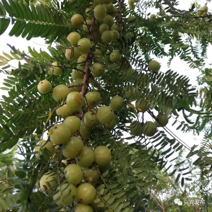 眼下,牛甘果已经进入成熟收获期。在来宾市兴宾区高安乡翁尧村委古六村的山头,放眼望去,一串串牛甘果如珍珠般压弯了枝头,在牛甘果种植基地,一串串晶莹欲滴的牛甘果挂满枝头,累累果实让人心生喜悦。每年的农历七八月就是牛甘果开始丰收的季节,山坡上,果树间,漫山牛甘飘香,随处可见果农们采摘牛甘果的忙碌身影,古六村村民陈秀槟和其他工人每日都要到果园采摘余甘果。看着一串串牛甘果如珍珠般压弯了枝头,大家的脸上都洋溢着收获的喜悦之情。