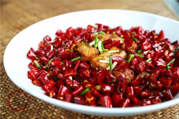将水潺治净,改刀切段;锅入油烧热,下姜粒、蒜粒爆香,入干红辣椒段,加少许清水炒至出香,捞出备用;锅留底油,入姜粒、蒜粒煸至金黄,下水潺微煎,加蚝油、老抽、美极鲜调味,烹花雕酒,加炒辣椒段烧约3分钟,收汁,放入葱段,出锅码盘即可。
