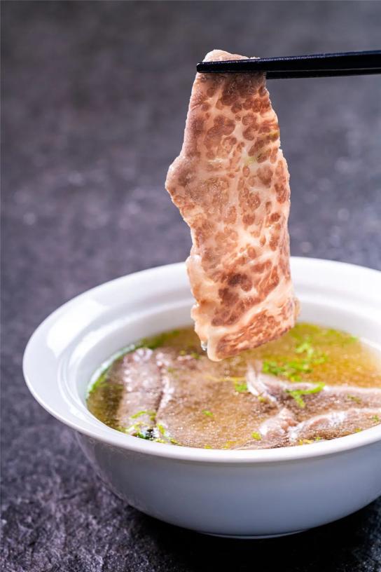 灵感来自潮汕鲜牛肉打边炉,但选材更高级,汤清味浓,牛肉滑嫩。