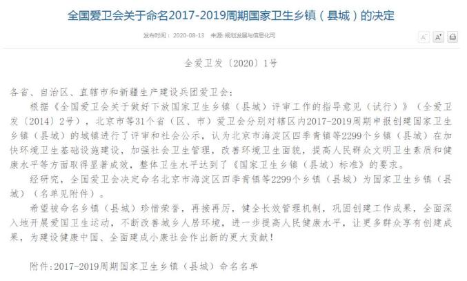 2017-2019周期国家卫生乡镇(县城)