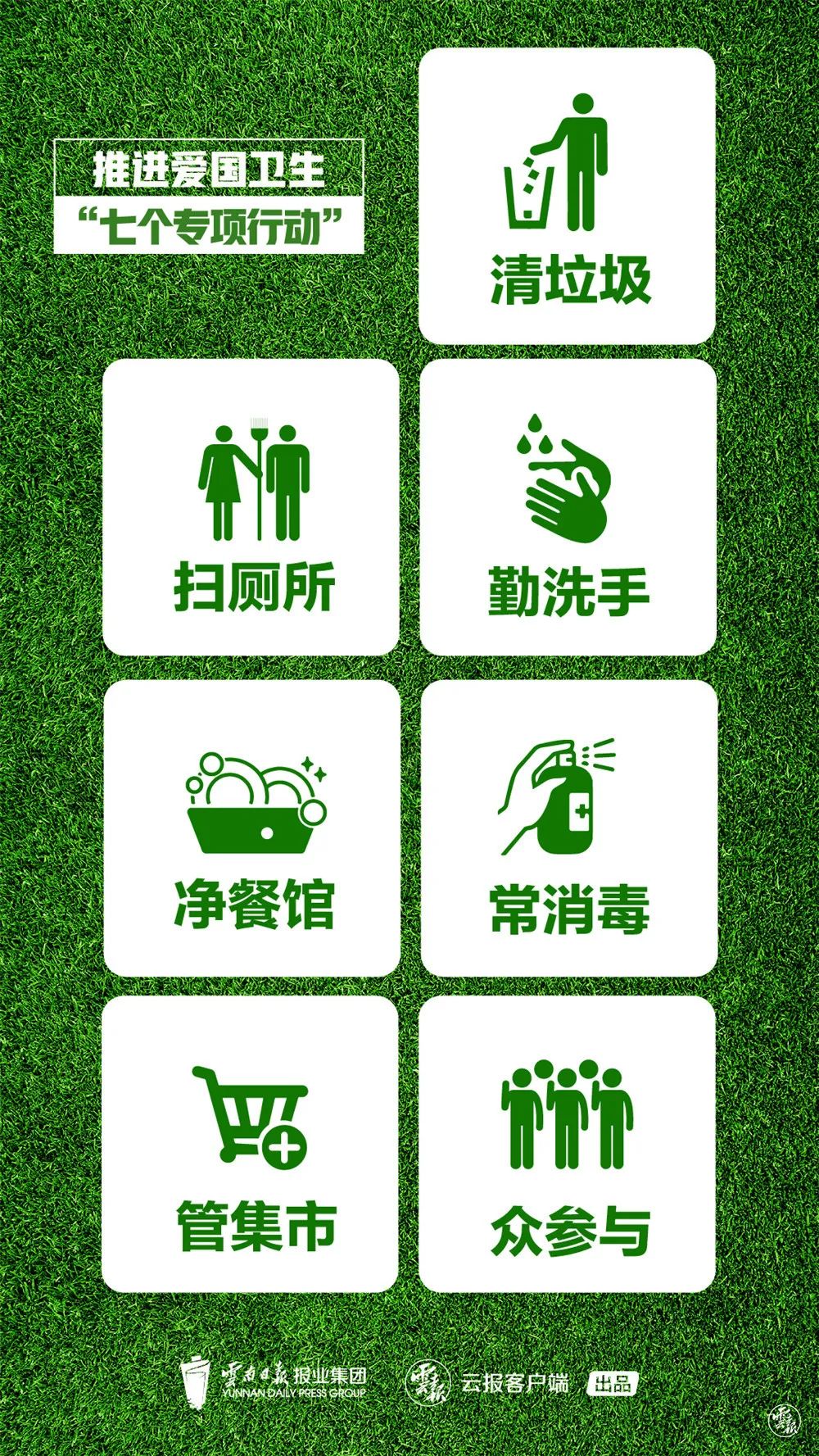 7月30日,云南省政府办公厅印发了《云南省推进爱国卫生“7个专项行动”方案》,提出在今年7月到明年底,在全省开展以“清垃圾、扫厕所、勤洗手、净餐馆、常消毒、管集市、众参与”为主题的“7个专项行动”,全面消除城乡裸露垃圾,消除城镇旱厕,完善公众洗手配套设施,改善餐饮服务环境卫生,大力推进公共场所常态化清洁消毒,彻底改变农贸市场“脏、乱、差”现状,引导全社会形成健康文明新风尚,全面推进全省卫生城镇创建达标,着力健全完善常态化疫情防控体制机制,推动从环境卫生治理向全面社会健康管理转变,解决好关系人民健康的全局性、长期性问题。