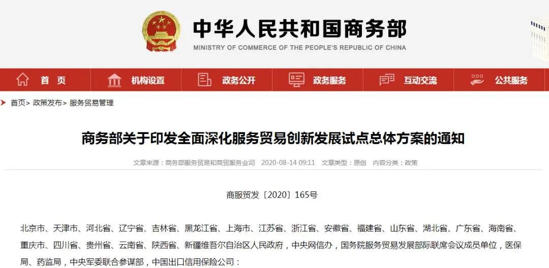 | 溯源:北京等28个省市是全面深化服务贸易创新发展试点