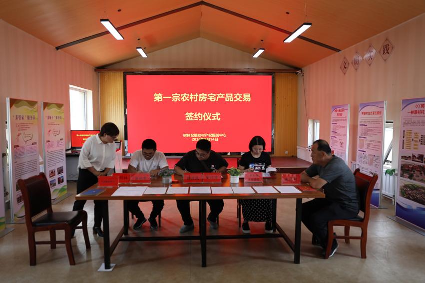 综合比较几处院落后,刘先生很快选定了一处占地900多平米的院落,大小合适,价钱也不贵。2020年8月14日下午,刘先生与出让方林原村富民生产互助合作社签订合同,以15.6万元购得该处房宅30年的使用权,并领到了树林召镇农村产权服务中心颁发的《农村产权交易鉴证书》,正式拥有了房屋使用权,令他高兴万分。这是树林召镇农村产权服务中心的第一宗交易,正式拉开了农村闲置资源资产入市交易的大幕。那一刻,高兴的人不止刘先生,树林召镇党委和政府的领导干部、林原村的“两委”班子成员和村民们、交易房屋的所有者都激动高兴,大家都知道——树林召镇农村产权交易制度改革终于迈出了实质性步伐。“刘先生购买的那处院落是我家的,从2013年开始就一直在闲置,房子久不住人容易坍塌荒废。经过测绘、评估价格后,以近13万元的价格入到林原村富民互助生产合作社,由合作社负责向外交易,我什么都不用管,没想到很快就成功了。以后我不仅不用维修房子,而且每年还能获得一笔可观的收益,真的像领导们说的一样,‘死资产’居然‘活’了起来!”林原村村民张喜说。