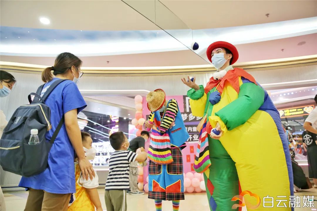 小镇有不少趣味摊位,吃喝玩乐节目多多,还有小丑队伍来回巡游,以及梦多多吉祥物,吸引不少居民握手合照留念。同时,这里还设置了趣味体能游戏区,儿童绘画作品展示区、趣味篮球游戏区等多个区域,供亲子家庭游玩。