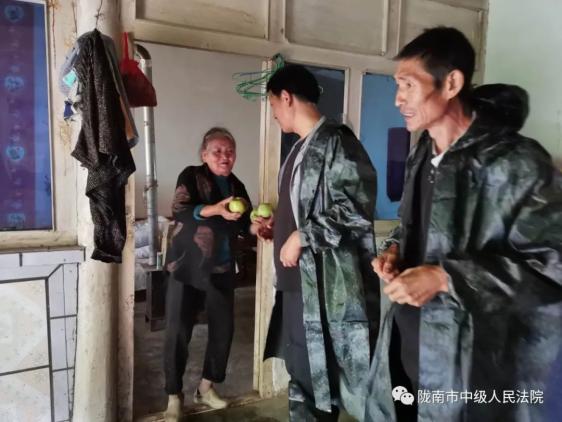 两户人家都说没啥问题,就是可惜了大片倾倒的即将成熟的番麦(玉米)。周会桃的母亲还拿出暴雨打落的苹果招呼我们,腿脚不便的她为了让我们放心她目前的生活,怕我们回去后给她在外务工的女儿打电话通报她的困境,硬是拉着帮扶队员的手查看她蒸了一大锅的馍馍和盛满大小塑料桶的房檐水,她不停地念叨着说:“雨这么大你们还来看我,真是太有心了。”她还劝慰我们说一个人生活习惯了,哪里也不去,比起过去的生活现在享福着呢,雨停后天晴了还要帮着娃娃们掰番麦呢!