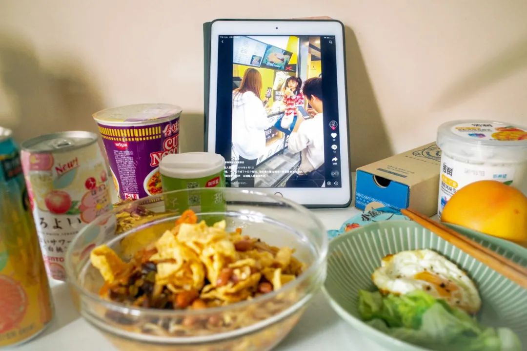 变化始于2016年,受日韩吃播博主启发,周小楠把自己吃饭的实录视频发上美拍,逐渐有了五六万关注者。2019年毕业季,一个南京的MCN公司向她发出邀约,她成了抖音美食博主“大胃小楠”。