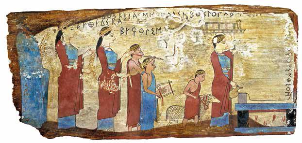红色的这种优先地位在日常生活和世俗文化中也有所体现。在地中海周边,人们很早就在住宅、城市建设(砖石、瓦片)、器物(各种陶器和瓷器)、织物、服装、珠宝首饰乃至陪葬品上使用红色,不仅是为了美化,也为了起到趋吉避凶的作用。同样,在艺术表演和宗教仪式中,红色经常与权力和神圣联系在一起,包含丰富的符号象征意义,有时还拥有超自然的力量。