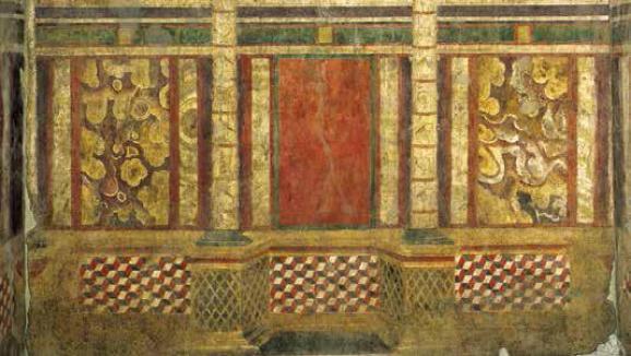 狮鹫之家是一幢住宅,位于帕拉蒂尼山上。住宅内有一个大厅,厅内的墙壁上有一组运用了透视原理而具有立体感的壁画,属于庞贝第二风格。画中使用了许多不同种类的红色颜料:朱砂、赤铁矿、红铅。