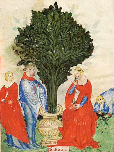 《健康全书》,抄录并绘制于米兰,约1390— 1400 年。巴黎,法国国立图书馆,拉丁文手稿1673 号,22 页反面