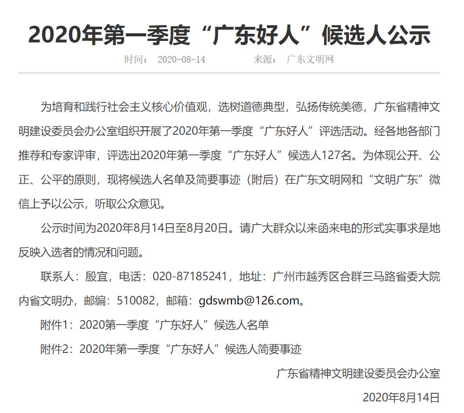“广东好人”候选人名单公示