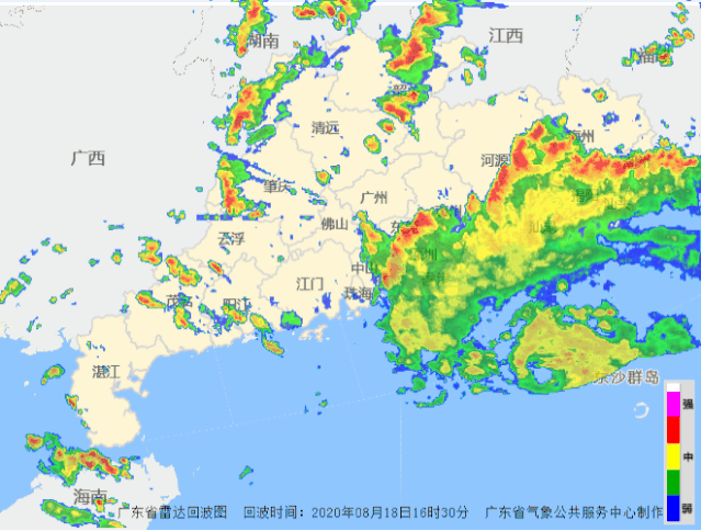 受“海高斯”影响,19日,珠江三角洲市县、茂名、阳江、云浮有暴雨到大暴雨,局部特大暴雨,其余市县有中到大雨局部暴雨。