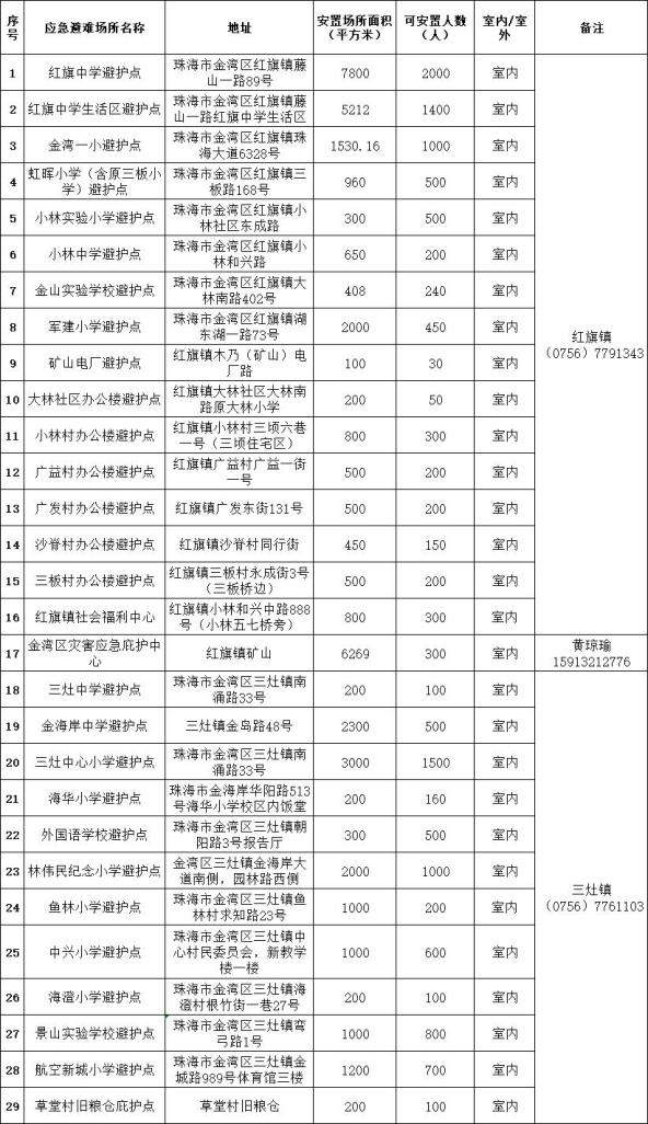 珠海香洲区通知出海渔船迅速回港避风并落实防风措施,向每位渔民发出回港避风短信,已回港避风渔船215艘。已关闭三大沙滩、海滨泳场和临山临海等25处社区公园。已排查12380名临险人员(工地临险人员10494,居民临险人员1886),已通知全部进行安全转移。