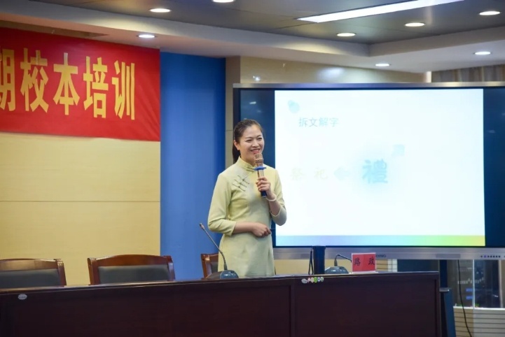 7月8日上午,一位青年女性款款步入阜阳市铁路学校暑期校本培训的会场,只见她身着鹅黄色旗袍,简单的马尾梳,略施粉黛,整个人显得端庄大气,流露出中国女性特有的古典美。她叫路政,来自阜阳幼儿师范学校,是校本培训的特邀讲师之一,专程为近百名教师“传经送宝”。