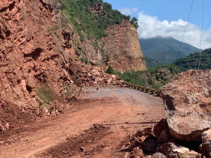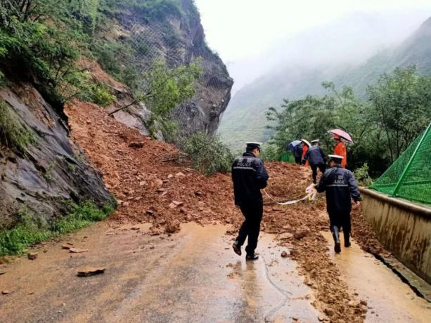 2、G247国道礼武公路雷坝镇朱雀路段山体滑坡,道路受损,车辆无法通行。