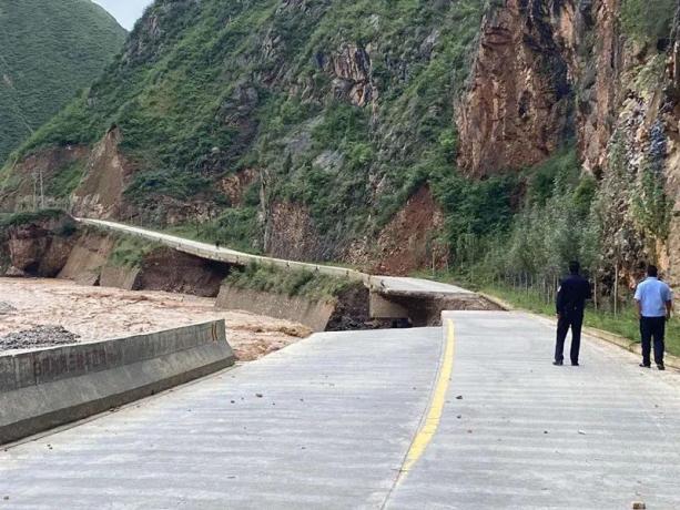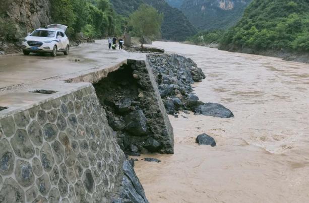 5、国道212线374KM+500M处(宕昌县两河口镇化马村)路段,国道已被洪水冲断,无法通行。
