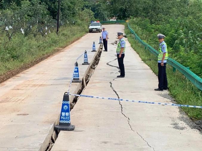 10、小李路水磨沟村弯道路段路基下沉,后寨段3KM路基垮塌,车辆不能通行,已交通管制。