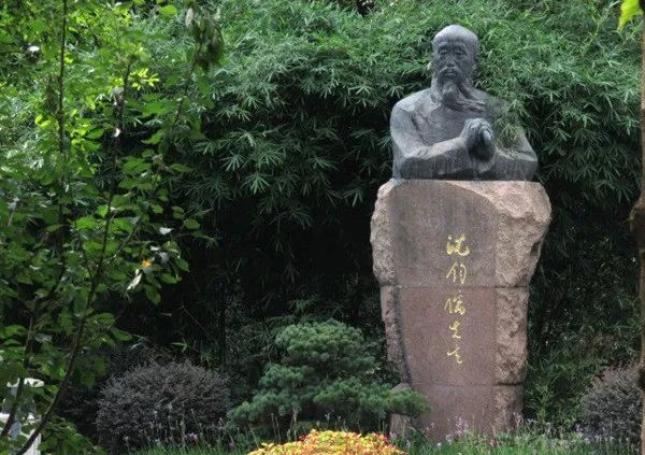 沈钧儒是中国民主同盟的创始人之一。1935年,他与宋庆龄等发起并组织了全国各界救国联合会,积极开展抗日救亡运动,触怒当局而遭入狱,为著名的救国会“七君子”领头人。他为反对内战争取和平,建立和扩大爱国统一战线作出了很大贡献,被誉为“民主人士左派的旗帜”“爱国知识分子的光辉榜样”。沈钧儒一生爱石,常说石头最坚硬,最纯洁,他的书斋就名“与石居”,此处遂把他的塑像与石同居。塑像后有两座小岗,上面栽植几株香樟,岗下有罗汉松、广玉兰、白玉兰、红叶李等花灌木点缀。