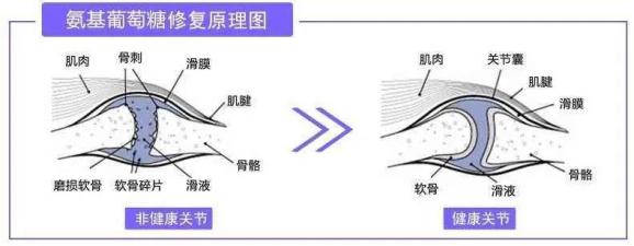 氨基葡萄糖又称氨基葡糖、葡萄糖胺或葡糖胺,是葡萄糖的一个羟基被氨基取代后的化合物,由德国外科医师兼药剂学家格奥尔格于1876年首先从甲壳素的水解产物中分离得到。氨基葡萄糖是生物合成葡萄糖胺聚糖(GAG)的必需品。GAG是一种重要的物质,在动物机体内应用于结合水形成缓冲剂、润滑和保护透明软骨质。通常情况下,葡萄糖通过氨基己糖生物合成途径在体内生成氨基葡萄糖。在正常的生理条件下,细胞外液中的氨基葡萄糖含量要低于临床检测。如果在饮食中补充氨基葡萄糖,氨基葡萄糖通过葡萄糖运输途径迅速运送到细胞,同时通过磷酸化作用形成葡萄糖六磷酸盐,从而进入氨基己糖生物合成途径。氨基单糖可刺激软骨细胞产生具有正常多聚体结构的糖蛋白,抑制一些可损害关节软骨的酶(如胶原酶),防止皮质激素及某些非甾体抗炎药物对软骨细胞的损害及减少损伤细胞的内毒素因子的释放。在关节炎的发展进程中,补充外源性的氨基葡萄糖可能起到有益的作用