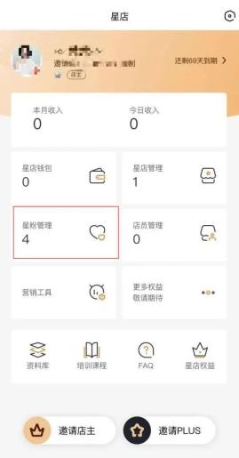在姜女士的星店管理界面可以看到,到目前为止,姜女士的星店旗下只有4个“星粉”,也就是她推广的Plus会员。