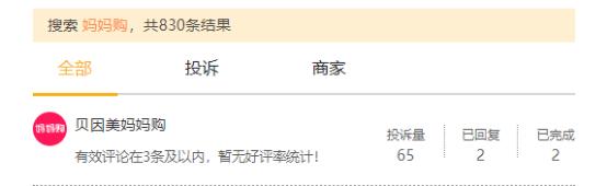 8月17日,《中国消费者报》在黑猫投诉平台搜索“妈妈购”,共有65条相关投诉,其中绝大多数为投诉“贝因美妈妈购”未能履行之前承诺的星店店主权益,且平台无法联系。
