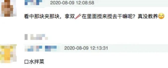 有人说她用筷子乱翻菜碗,骂她没教养。