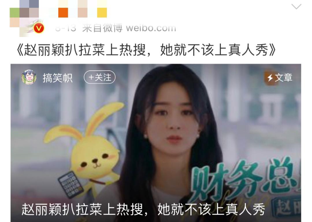 节目播出后,赵丽颖瞬间便被骂上了热搜。
