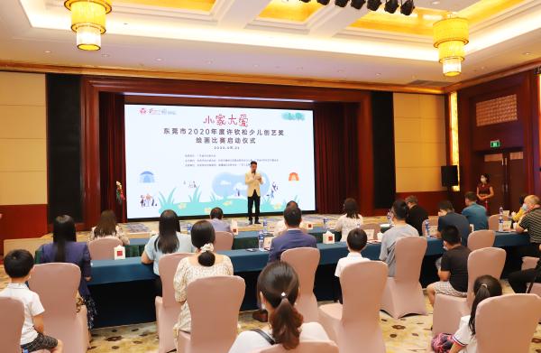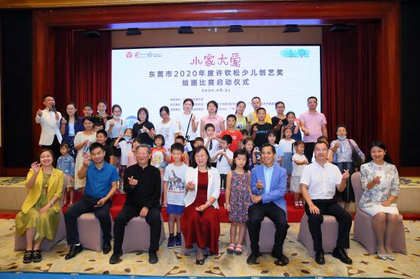 在启动仪式上,出席活动的领导一起上台,共同启动了东莞市“小家大爱”2020年度许钦松少儿创艺奖绘画比赛活动。