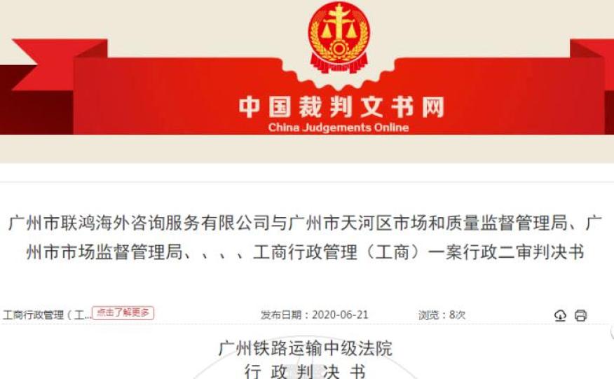 上诉人广州市某海外咨询服务有限公司因诉被上诉人广州市某区市场监督管理局、广州市市场监督管理局行政处罚决定及行政复议决定一案,不服广州铁路运输法院行政判决,向本院提起上诉。本院依法组成合议庭,对本案进行了审理,现已审理终结。