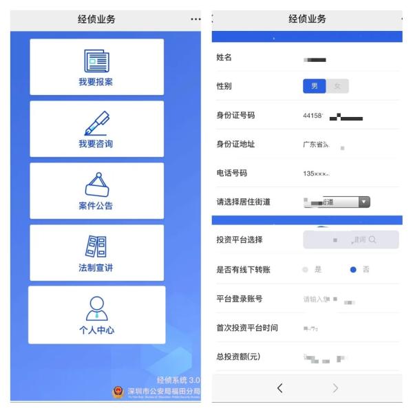 针对涉众金融风险,福田公安分局还搭建沟通渠道,利用“福田警察”微信公众号推出“网上报警”功能,方便线上登记报案。“防范化解金融风险,需要社会各界一起努力。”郭念聪表示,如何有效针对投资者开展投资风险知识普及,也是摆在当前的一大课题,我们联合相关部门加强日常执法监管,注重源头预防治理。