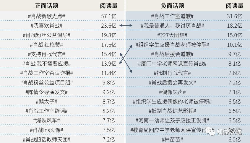 微博,无疑是粉圈的重要阵地之一。以微博传播效果衡量,肖战粉丝无论在微博数量还是转评赞互动效果上都远强于“反肖战”阵营,主要通过发布一系列的正面话题以提升肖战的正面曝光度:除了“余生请多指教”“狼殿下”“光点”等作品相关内容宣传外,还大力宣扬了肖战“正能量”“公益”形象,阅读量动辄过亿。