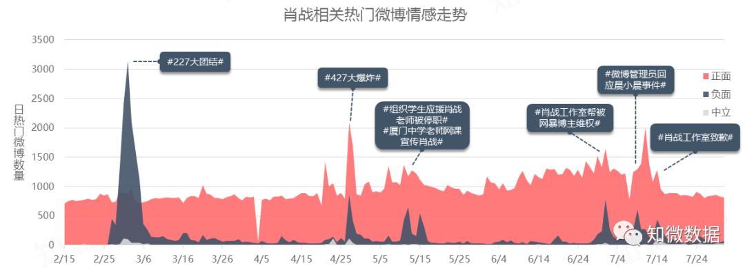 尽管肖战似乎处于“群嘲”境地,给路人口碑“下滑”的印象,但梳理近半年肖战相关所有热门微博可以直观看出,227事件之后,整体正面的声音其实一直以来都远远高过负面和中立,即使427炸号事件引起的舆论小爆发也不例外。