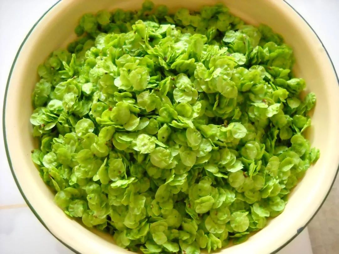 调料也是西域特色的胡椒粉,这样的炒榆钱不仅有着本身的榆钱香嫩,还有着淡淡的蒜香和胡椒香。榆钱在少有绿叶菜的西北食谱中,不仅能很好地补充叶绿素,还有丰富的铁质,比菠菜高十倍,能通淋、去湿热、助消化。