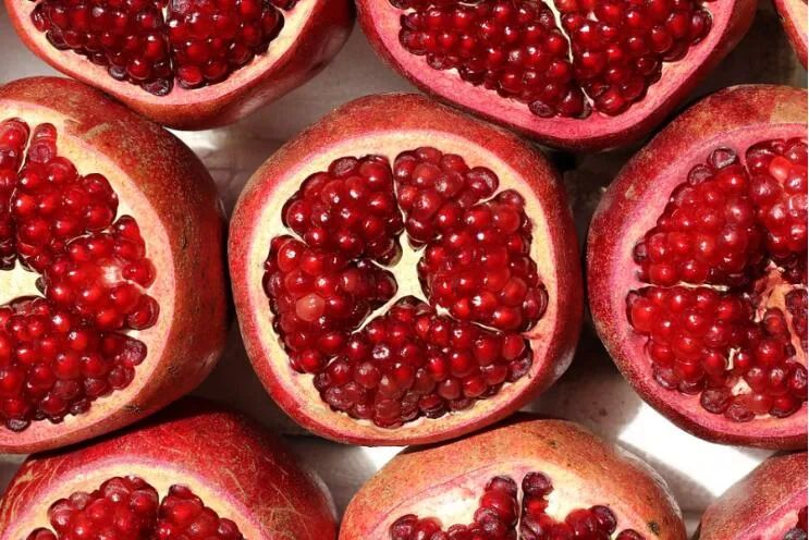 除了这些常见水果外,石榴、红枣、核桃也是新疆特产。皮石县的石榴,取名于晋朝《博物志》,张华记载“得涂林安石国榴种以归,故名安石榴。”日夜温差大,日照时间长、光照足,沙土出的石榴还需经历霜打,个头大、皮薄、味甘甜、籽小,汁水丰盈。石榴安神,抗氧化物丰富,连某知名化妆品都要蹭红石榴的热度,实属秋冬必备良果。