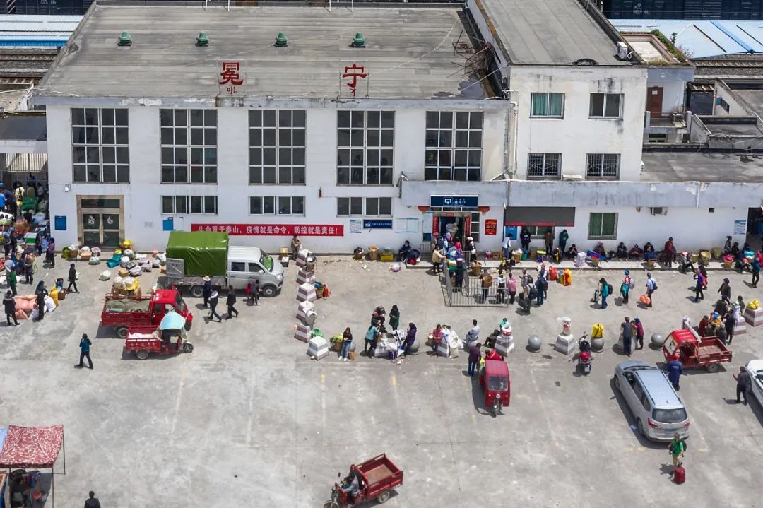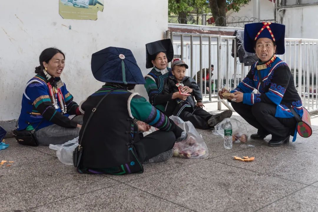 车站外正在候车的彝族老百姓。