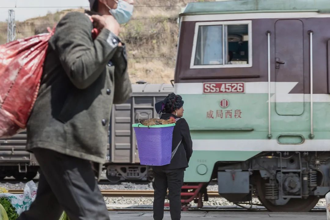 绿皮火车,从前是最普遍的交通工具,曾经满载着人们奔向四面八方,在每个人心中都留有深深的印记,随着社会的发展进步,高铁的出现,绿皮火车已渐渐淡出了人们的视线。而在凉山,在成昆线攀枝花至普雄,还行驶着两列绿皮5633/5634次列车,因为票价低,站站停,速度慢,又称为慢火车,该次列车运行里程353公里,全程26站,其中21站位于凉山山区,平均每12分钟便停靠到站一次,最低票价仅2元人民币。绿皮火车通行的地方是凉山彝族群众的主要聚居地,这里交通相对落后,公路漫长,火车依然是当地群众出行的主要交通工具。这趟列车又被称为大凉山深处的“公交车”,每到一个车站,很多穿着民族服饰的当地村民携带着货物排队上车,考虑到沿途村民的生存状态,铁路部门破例默许一些超常规的现象存在,可以携带超过行李尺寸规定的大宗货物,也可以携带鸡鸭鹅猪羊等家禽。